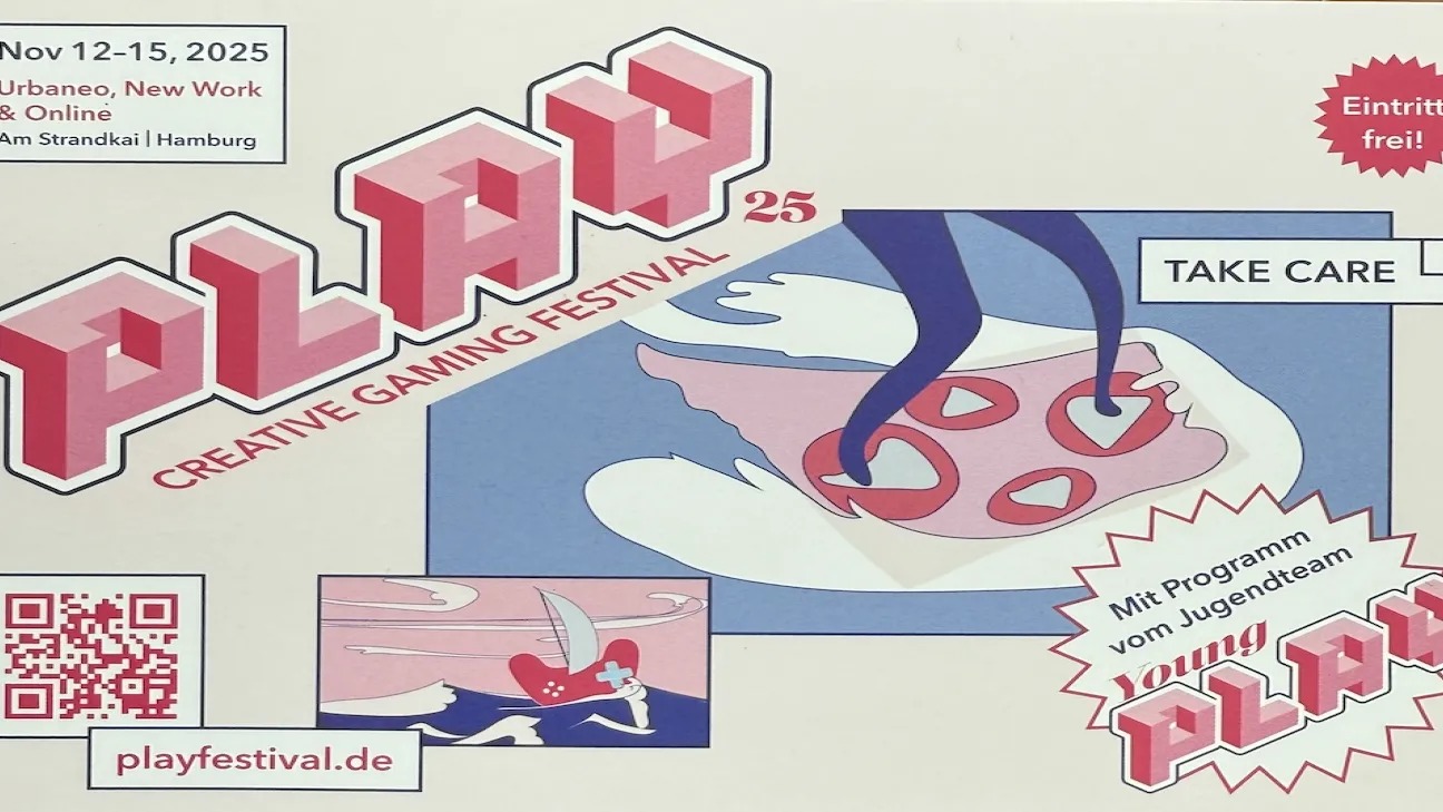 Vom 12. bis 15. November 2025 verwandelt sich die Hamburger HafenCity in einen kreativen Hotspot für digitale Spielkultur. Unter dem Motto »Take Care« widmet sich das 18. PLAY – Creative Gaming Festival der Frage, wie Verantwortung, Fürsorge und gesellschaftliche Teilhabe in und durch Games sichtbar und erlebbar werden. Rund um die neuen Festivalorte urbaneo – Junges Architektur Zentrum und New Work erwartet die Besucher*innen ein vielfältiges Programm aus interaktiven Ausstellungen, Talks, Workshops, Fortbildungen und Shows. Alle Angebote sind kostenfrei zugänglich. PLAY ist das Festival für Spieleliebhaber*innen und Gamer*innen, Indiegameentwickler*innen und Medienkünstler*innen, Schüler*innen und Studierende, Lehrende und Pädagog*innen, Wissenschaftler*innen und Menschen aus der Games-Branche sowie alle, die mit digitalen Spielen spielen und lernen wollen.